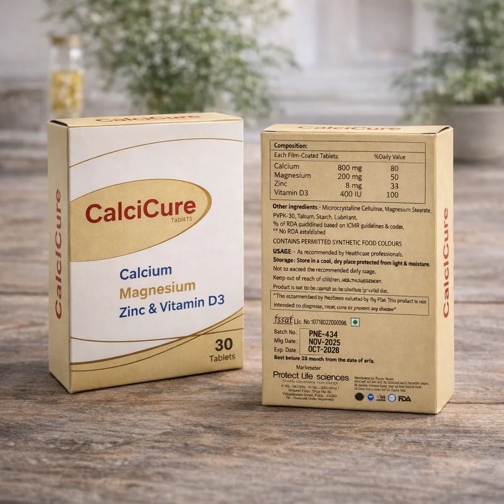 CalciCure Tablets are a scientifically formulated calcium supplement designed to meet the increased nutritional needs during pregnancy, lactation, and other stages requiring enhanced bone support.
