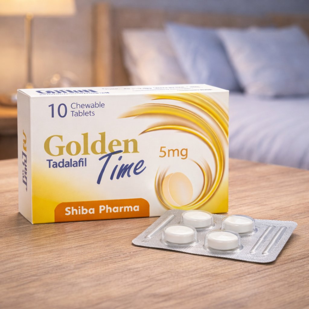 Tadalafil is well absorbed after oral administration. The maximum plasma concentration is typically reached within approximately 2 hours, allowing effective onset and sustained action. Golden Time 5 mg offers reliable support for erectile function when used as prescribed.