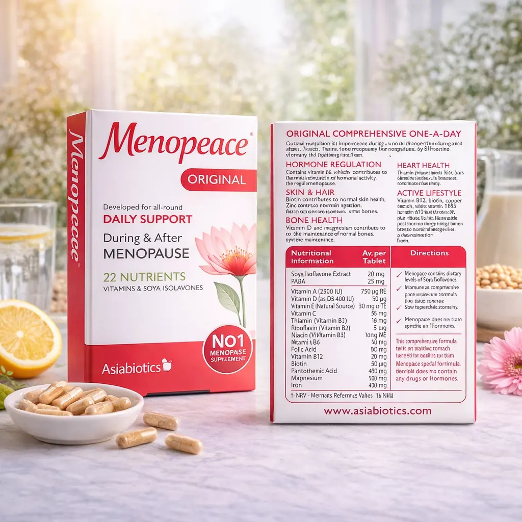 Menopace Original is scientifically formulated to provide comprehensive daily nutritional support throughout all stages of menopause. The advanced one-a-day formula contains 22 carefully selected nutrients, including vitamins, minerals, and moderate dietary levels of soya isoflavone extract (20 mg), designed to support overall well-being during hormonal change.